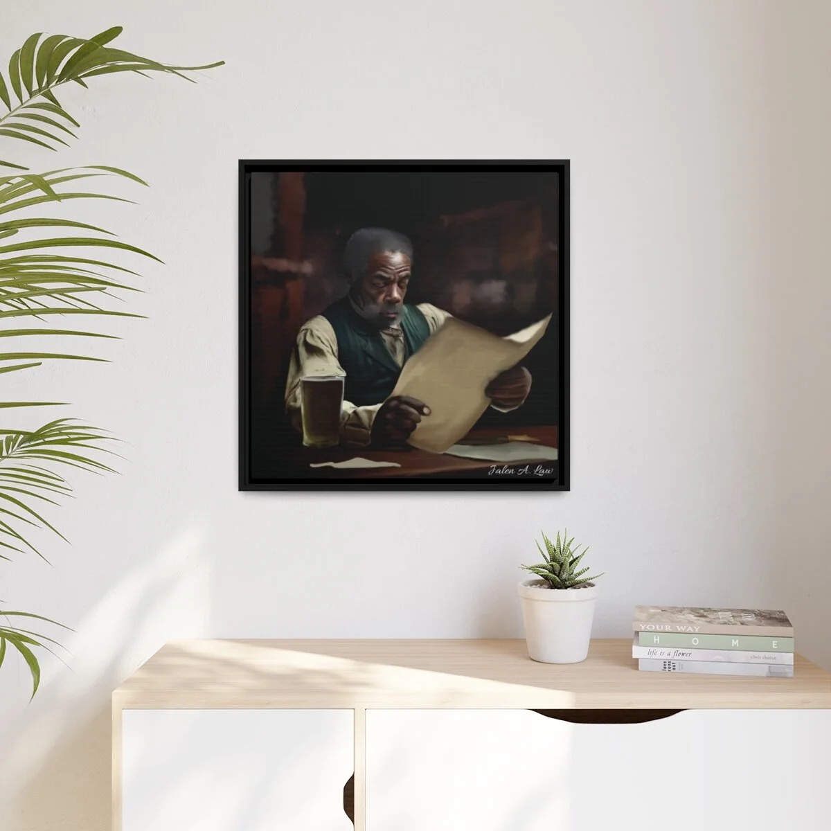 Every print in a black pinewood frame will look sleek and beautiful in any interior. Your original designs will be printed on the cotton-polyester canvas with a special proprietary coating to make sure your designs stay vibrant for ages. An excellent product for your environmentally-conscious buyers – it's made from sustainably sourced materials (Forest Stewardship Council certified). Choose between multiple sizes for different types of prints. The sawtooth hanging hardware is already attached.
