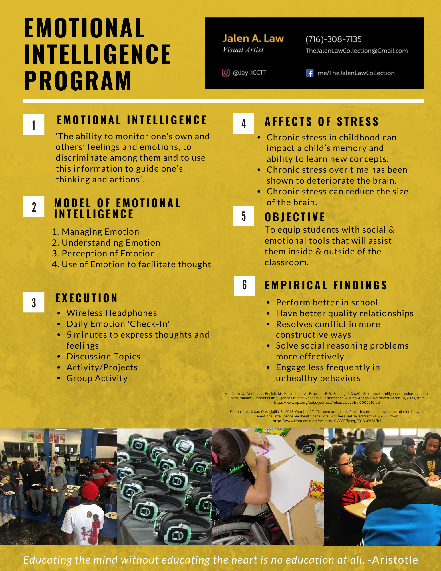 Grounded in the foundational research of Dr. Peter Salovey, Dr. John Mayer, and Dr. Daniel Goleman, the Emotional Intelligence Program (E.Q.P.) turns decades of psychological theory into hands-on, practical strategies that transform classrooms, communities, and teams.